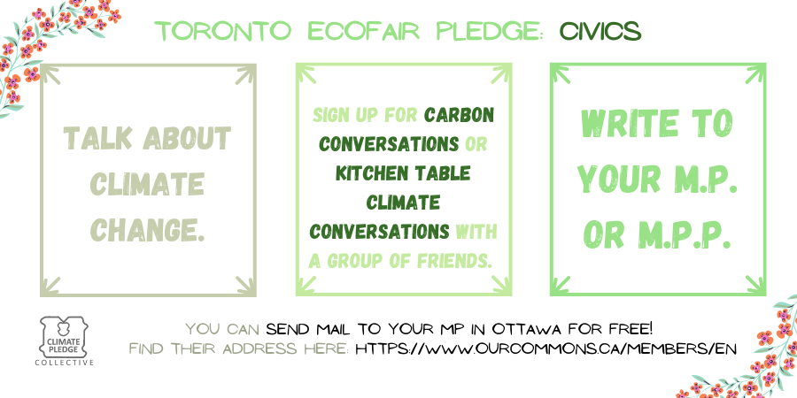 If you’ve got kids — or if you are a kid — please check out our Kid’s Pledge designed by our youngest volunteer. If you’re a grown-up, we developed a condensed version of our regular pledge specifically for the EcoFair with easy, medium and hard pledges in seven categories. You can make your pledges using a google form – or just jot them down on paper after reviewing the pledges below.