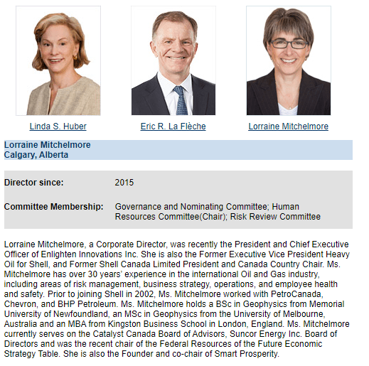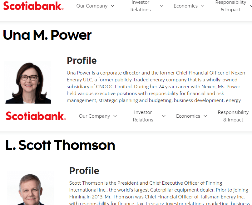 After reading the UK report, I decided to take a look at the boards of the big five Canadian banks and, of course, every single bank had board members with close ties to one or more fossil fuel companies — plus representatives from other dirty industries like mining and aviation. I likely missed several people as I just skimmed public bios rather than actually going digging. At BMO, Lorraine Mitchelmore is a former Shell executive. At CIBC, Jane Peverett was the CEO of Union Gas and Patrick Daniel was the CEO of Enbridge. Enbridge is pushing the Line 3 pipeline expansion through Ojibwe territories in Minnesota in the face of strong opposition. At RBC, Thierry Vandal is currently on the board of directors for TC Energy who are currently building the Coastal Gaslink Pipeline through Wet’suwet’en land out west. At Scotiabank, Una Power is a former Nexen CFO and currently on the board of directors of TC Energy; while L. Scott Thomson is a former CFO of Talisman Energy Inc. At TD, Brian C. Ferguson is the former CEO of Cenovus Energy.