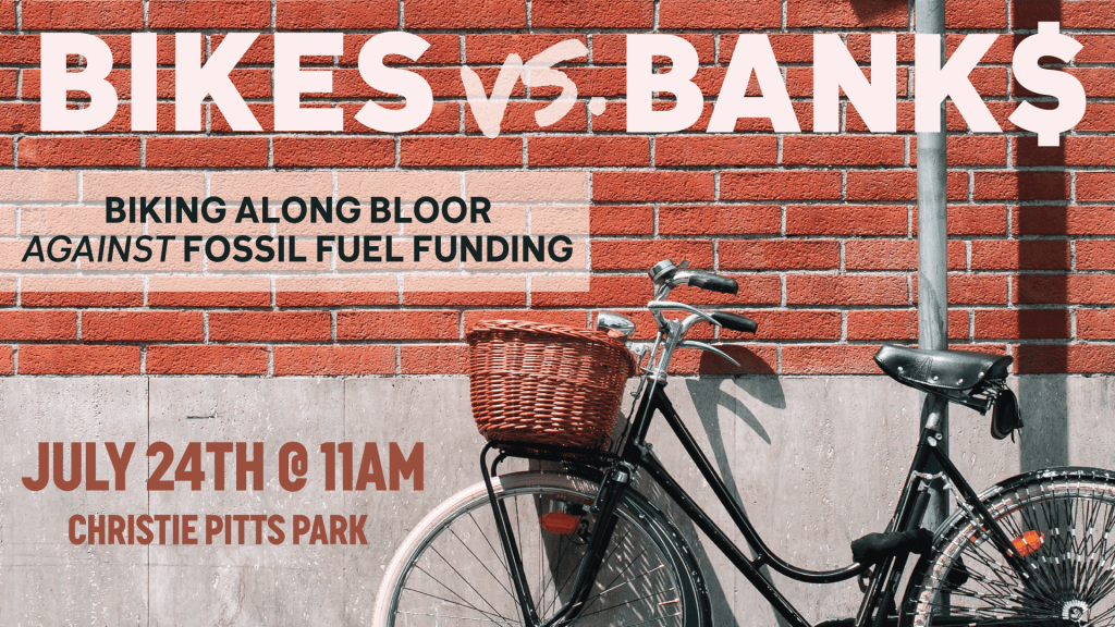 Bikes Vs. Bank$ is going to be a fun bike ride and protest along Bloor Street with stops at several bank branches. You can RSVP on Facebook or just show up at the South East Corner of Christie Pits around 11am on July 24th.