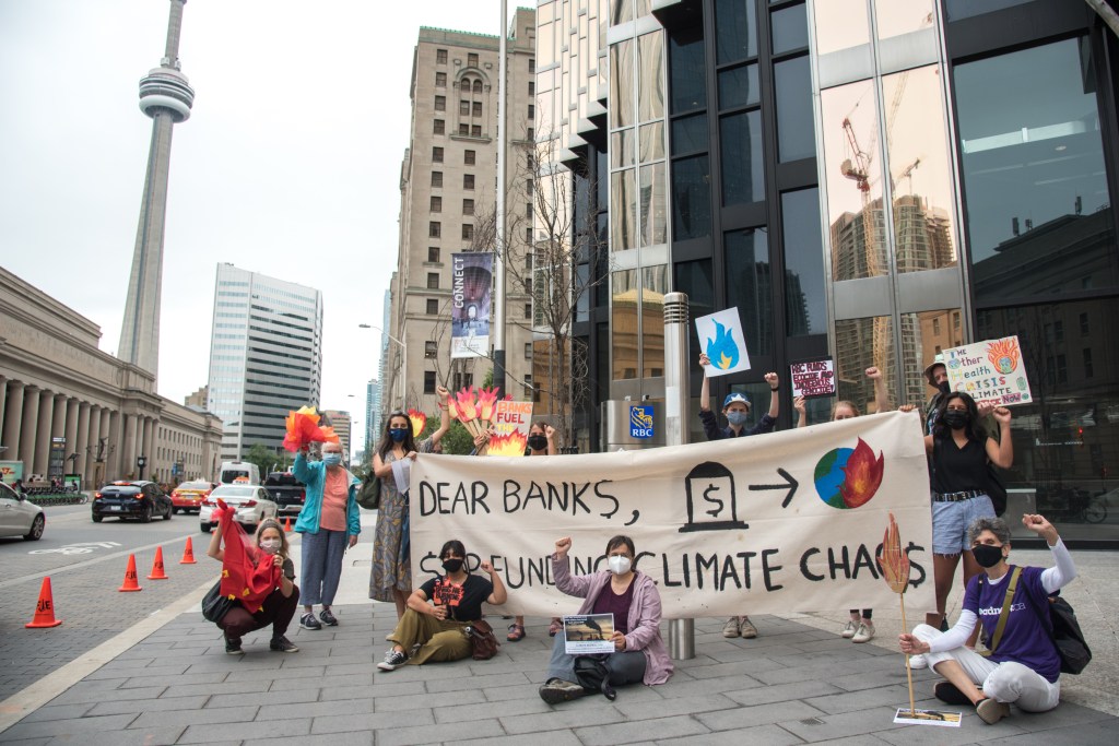 Toronto’s grassroots climate finance action network — with members from Toronto350, Fridays for Future, For Our Kids TO, Banking on a Better Future, PHP4Climate, GASP, ARCA and more — is really getting up to speed in July. So far this month, we’ve run a Bad Google Review party for RBC, done new research comparing banks and credit unions, faxed Scotia, postered several neighbourhoods, started planning to reach out to environmental groups funded by TD’s Friends of the Environment Foundation and held a snap action calling out the banks for funding the projects that caused 2021’s unprecedented heat wave.