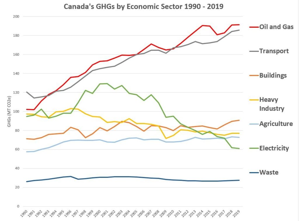 Why are Canadian emissions failing to fall? Because a major decline in our electricity sector caused by the closure of coal power plants in Ontario and Alberta has hidden a drastic increase in emissions from oil and gas (tar sands) and transportation (SUVs).